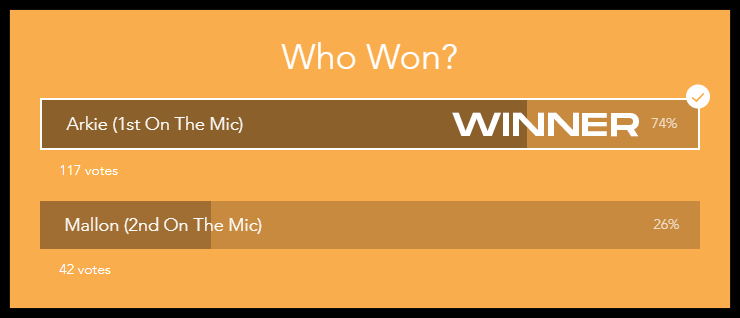 All these are sick!! One thing though the names are not right on last one Banksy went first, blitz went second not sure if people voted for right person and its pretty close in votes thought I'd bring it up, well in too all mcs involved quality